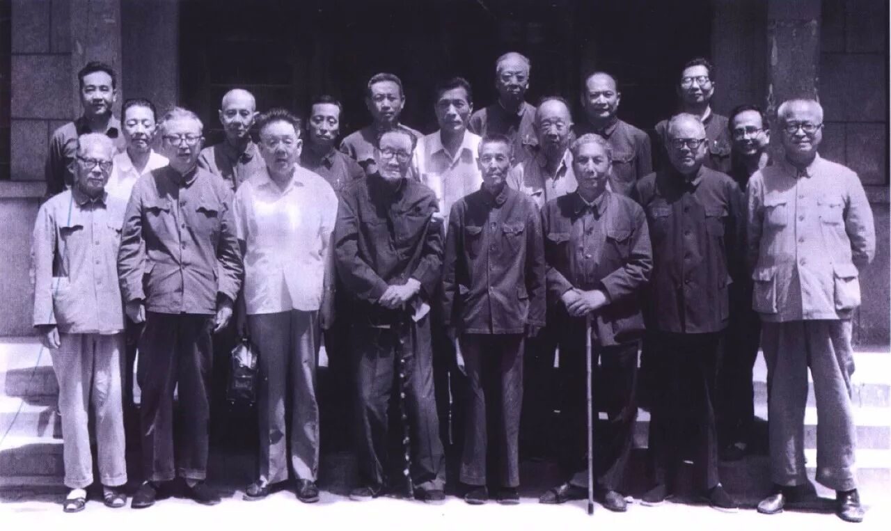 1979年6月9日,中國社會科學院歷史研究所學術委員會成立留影。前排左起:王毓銓、白壽彝、鄧廣銘、侯外廬、尹達、翁獨健、胡厚宣、張政烺;後排左起:酈家駒、梁寒冰、孫毓棠、李學勤、田昌五、林英、熊德基、楊向奎、牟安世、黃烈、林甘泉。