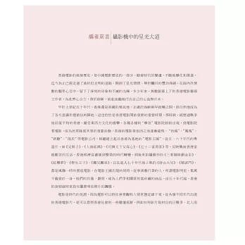 1. 本書收集了超過100幅60至80年代的電影明星舊照片,全部均由著名攝影師鍾文略先生拍攝,富有藝術感,每一幅都是一件大作。