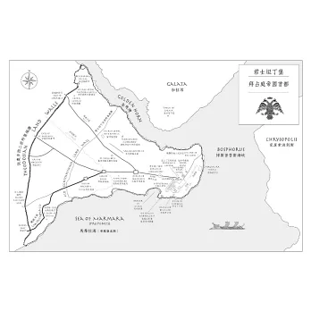 我在整本書中,都採取拉丁體而非希臘體的人名和地名,例如,把君士坦丁拼成Constantine而不是Konstandinos。理由是一般讀者較熟悉前者,能一望而知。在講述拜占庭的故事時,我採取一種以人物為軸的方法,因為皇帝對拜占庭人的生活舉足輕重。很少有社會像東羅馬帝國那樣專制:在那裡,龍椅上的人被視為半神,是真命天子,每個決定都深深影響著最不起眼的平民百姓。
